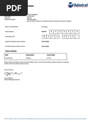 Proof Of No Claims Bonus Admiral Pdf